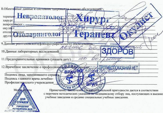 - отметки с печатями о пройденном обследовании;